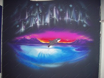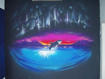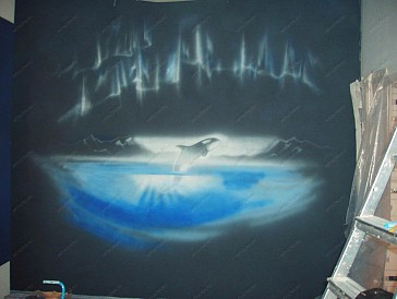 Роспись стен дельфин позволит Вам сохранить воспоминания о лете и о морском побережье. Художники нашей студии с радостью помогут Вам воспроизвести самые теплые воспоминания или смелые мечты, которые будут Вас согревать долгие годы. С нашей помощью Вы можете стать обладателем собственного пляжа или лесной опушки, или, как в данном случае, прекрасной косатки, которая подарит Вам хорошее настроение и положительные эмоции. Выбор косатки в данном проекте не случаен, поскольку она издавна считается символом мудрости, семьи и настойчивости. Кроме того она завораживает своей контрастной расцветкой, стремительностью и грацией. Роспись дельфин (ведь косатка относится к семейству дельфиновых) невозможно себе представить без изображения океанских просторов, и передачи ощущений простора и свободы, поэтому мы приняли решение изобразить косатку в момент прыжка над водой, когда она, переливаясь под лучами заходящего солнца, демонстрирует нам всю прелесть и очарование своего мощного и стройного тела. А поскольку косатка – это еще и неизменный символ севера, то мы решили дополнить настенную роспись стен дельфин северным сиянием на темном фоне, которое символизирует прекрасные и загадочные полярные ночи. В итоге получилось немного сюрреалистичная картина: с одной стороны темная и загадочная полярная ночь, а другой – яркая и красочная косатка. В свое работе мы использовали акриловые краски, которые позволили нам передать всю красоту и завораживающие краски северного сияния, и одного из самых прекрасных млекопитающих - косатки. |