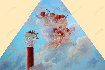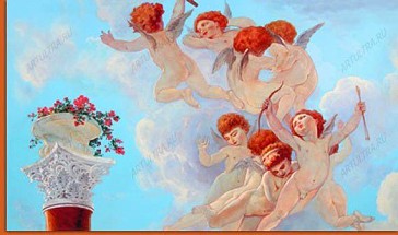 Роспись стен с сюжетом «Ангел» является не только оригинальным и необычным украшением помещений, но и позволяет создать удивительную атмосферу, в которой мифы переплетаются с реальностью. В нашей студии Вы можете заказать настенную или потолочную роспись любой степени сложности, а наши художники с удовольствием, качественно и быстро нарисуют выбранный рисунок на стене или потолке. Работая над данным проектом, мы стремились не только заполнить пустующее пространство одной из стен, но и создать в помещении определенный цветовой акцент. Кроме того заказчику хотелось сделать очень светлое, легкое и воздушное помещение более «земным». Именно поэтому была выбрана роспись «Ангелы», как бы это ни показалось странным. Ведь именно веселящиеся в облаках ангелочки, напоминают нам о том, что мы наслаждаемся земной жизнью, и ангелов можем видеть только в своем воображении. Не случаен и выбор цветового решения облаков, которые, как Вы можете увидеть, варьируются от легких и пушистых, до темных и грозовых. Кроме того, что такая цветовая гамма создает прекрасный цветовой акцент, белые и темные облака символизируют «черные» и «белые» полосы нашей жизни, которые, постоянно чередуясь, сопровождают нас всю жизнь. Рассматривая роспись стен с рисунком «Ангелы», хозяин будет постоянно помнить, что за «черной» полосой обязательно последует «белая», поэтому не стоит унывать. Необходимо отметить, что настенная роспись была выполнена экологически чистыми акриловыми красками, которые характеризируются устойчивостью к воздействию ультрафиолета. Поэтому, несмотря на попадание прямых солнечных лучей, рисунок со временем не выцветет и не потускнеет. Кроме того настенная роспись покрыта акриловым лаком, который предохранит рисунок от механических повреждений. |