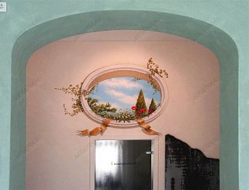 Роспись стен «Цветы» – это уникальная возможность наполнить свой дом вечной весной, и превратить его в цветущий сад. В нашей студии Вы можете заказать потолочную или настенную роспись любой степени сложности, и сделать свой дом эффектным и оригинальным. Очень многие из нас недовольны тем количеством окон, которое спроектировали архитекторы. Особенно это касается многоэтажных домов и типовых квартир, архитектурные особенности которых не позволяют прорубить окошко там, где Вам хочется. Однако для того чтобы получить лишнее окно совсем не обязательно устраивать глобальную перепланировку, и нарушать целостность здания. Достаточно поступить так, как сделали заказчики данного проекта – заказать в нашей студии роспись стен цветы. Они являются обладателями обычной типовой квартиры со стандартным узким и темным коридором. Поэтому в качестве сюжета настенной росписи решено было выбрать окно овальной формы, из которого открывается очаровательный пейзаж и голубое небо. А вьющийся плющ, который оплетает не только раму «окна», но и стены коридора заставляет воспринимать окошко как реальный архитектурный элемент помещения. Особой объемности настенной росписи придала техника аэрография, в которой был выполнен рисунок. Рисунок получился настолько реалистичным, что временами начинает казаться, что Вы слышите даже щебетание птиц и аромат весенних цветов. В целом роспись стен цветы придала коридору не только индивидуальные черты и оригинальность, но и сделала его намного светлее и просторнее. А яркие маки и развевающиеся ленты, позволили создать ненавязчивый цветовой акцент, и разбавить пастельные краски коридора. |