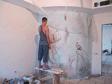 Роспись стен сакура в загородном доме20 / XI – 2009