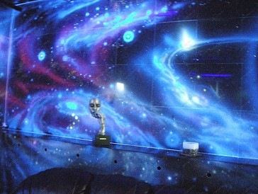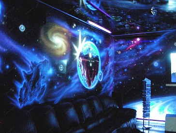 Роспись стен в клубах – это уникальная возможность сделать Ваше заведение запоминающимся и популярным. Благодаря росписи стен, выполненной нашими художниками, Ваш клуб заметно выделиться среди подобных заведений, и станет любимым местом отдыха и встреч многих посетителей. Поскольку современный клуб невозможно представить себе без загадочного свечения флуоресцентных красок, мы тоже использовали их в своей работе. Однако если в других клубах флуоресцентные краски используют чаще всего для имитации огней ночного города, то в нашей работе эти краски помогают окунуться посетителям в таинственный и нереальный мир фэнтези. Роспись стен в клубах всегда сопряжена с определенной сложностью, поскольку необходимо учитывать не только вкусы владельца, но и следить за тем, чтобы рисунок создавал психологически приятную обстановку, в которую посетители захотят возвращаться раз за разом. Для того чтобы атмосфера этого клуба стала максимально привлекательной, совместно с владельцем, было принято решение о комплексной росписи, то есть, была произведена не только роспись стен, но и потолка. Данное решение позволило нам превратить клуб в фантастический уголок нереальных огней, которые появляются под воздействием ультрафиолетовых свечей. В обычном же освещении поверхности стен и потолков напоминают черно-белые снимки, сделанные на космической орбите, поэтому появляется ощущение присутствия в центре управления космическими полетами. Такая роспись стен способствует и спокойному общению посетителей, желающих насладится необычной и спокойной обстановкой, и веселому отдыху любителей зажигательных вечеринок. |