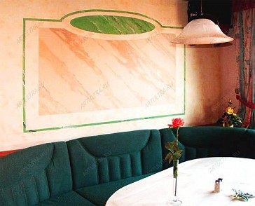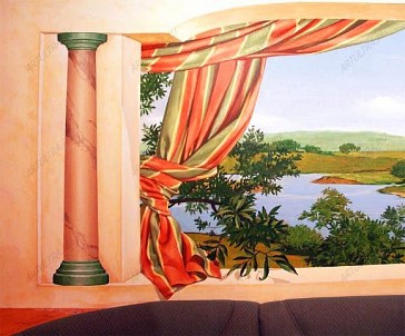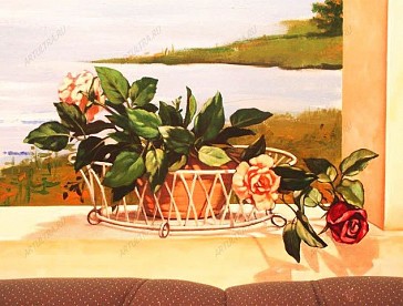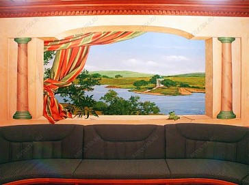 Роспись в кафе – это не просто дань моде, а уникальная возможность придать этому заведению собственное, узнаваемое лицо, благодаря которому посетители с удовольствием будут возвращаться в него вновь и вновь. Дизайнеры нашей студии с удовольствием помогут Вам выбрать подходящий сюжет для росписи кафе, а художники нашей студии профессионально воплотят все задумки в жизнь. Владельцы кафе прекрасно знают, что популярность заведения во многом зависит не только от изысканного меню и аппетитной кухни, но и от оригинального интерьера, яркую выразительность которому может придать художественная роспись стен и потолков. Именно поэтому заказчик данного проекта обратился к нам в студию с просьбой сделать его кафе оригинальным и запоминающимся. Поскольку заведение располагается в подвальном помещении и не имеет окон, решено было с помощью росписи в кафе восполнить этот пробел, и нарисовать огромные окна, и прекрасные пейзажи, открывающиеся из них. Такое решение придало всему помещению ощущение нереальности, поскольку посетители, заходящие в него, никак не ожидают увидеть здесь широкие окна, из которых можно рассматривать чуждые для городской суеты пейзажи. Кроме того благодаря настенной росписи все помещение стало намного светлее и уютнее. Сидя за столиком кафе, очень легко представить себе, что отдыхаешь где-нибудь за городом, и наслаждаешься не только вкусной едой, но и свежим воздухом. Особой реалистичности всей композиции придают занавески, и одинокий лист на подоконнике, как будто случайно брошенный сюда порывом ветра. |