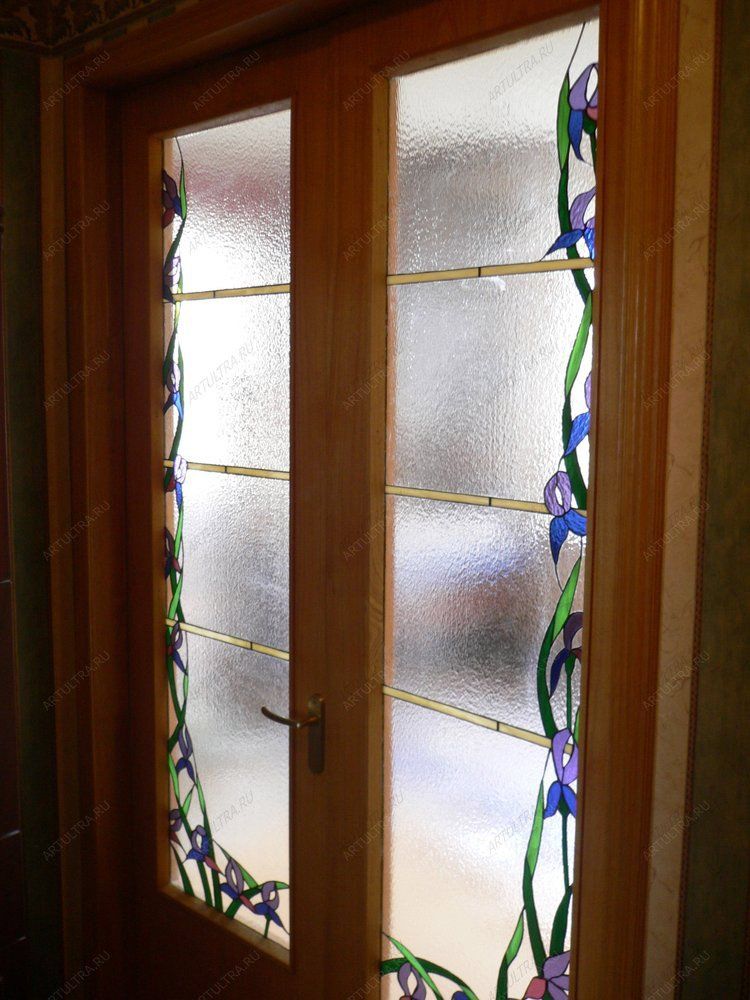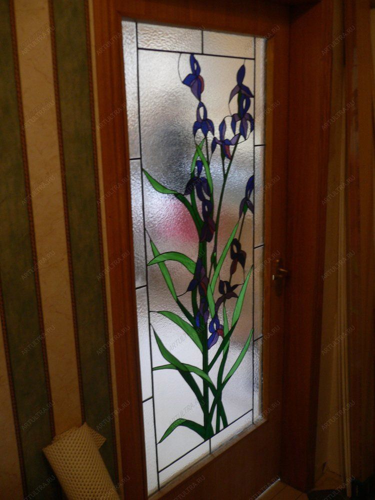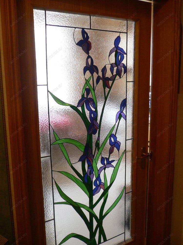 Витраж «Ирисы» позволит превратить скучные межкомнатные двери в эффектный элемент интерьера, а сам рисунок станет своеобразным оберегом для вашей семьи. Изящные синие ирисы по древним поверьям приносят в дом веру, спокойствие и домашнее благополучие, а их длинные листья, похожие на клинок, символизируют мужское начало, словно сигнал, что покой в этом доме – под защитой.