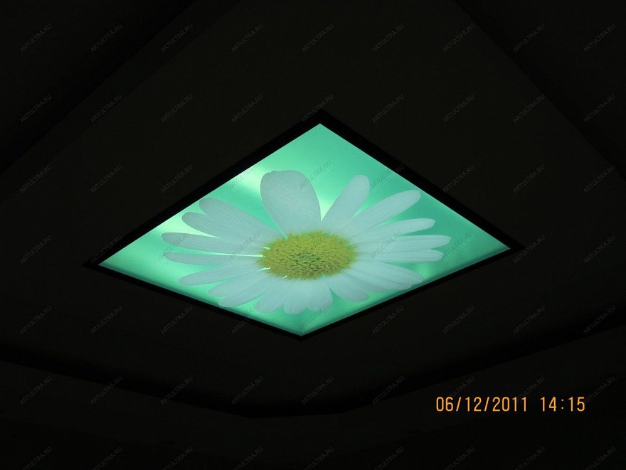 Кроме эстетического удовольствия, витражи выполняют и практичные функции. Благодаря этим изделиям можно зрительно увеличить пространство и сделать потолки идеально ровными. Чем привлекателен именно это витраж? Цветок на витраже «Ромашки» смотрится очень натурально благодаря технике прямой фотопечати, в которой он выполнен, поскольку на рисунке просматривается каждый лепесток. Современное оборудование и работа опытных мастеров смогли превратить даже такой простенький цветок как ромашка в настоящее произведение искусства. Но, что еще не маловажно, уход за таким витражом достаточно простой и не требует больших усилий.