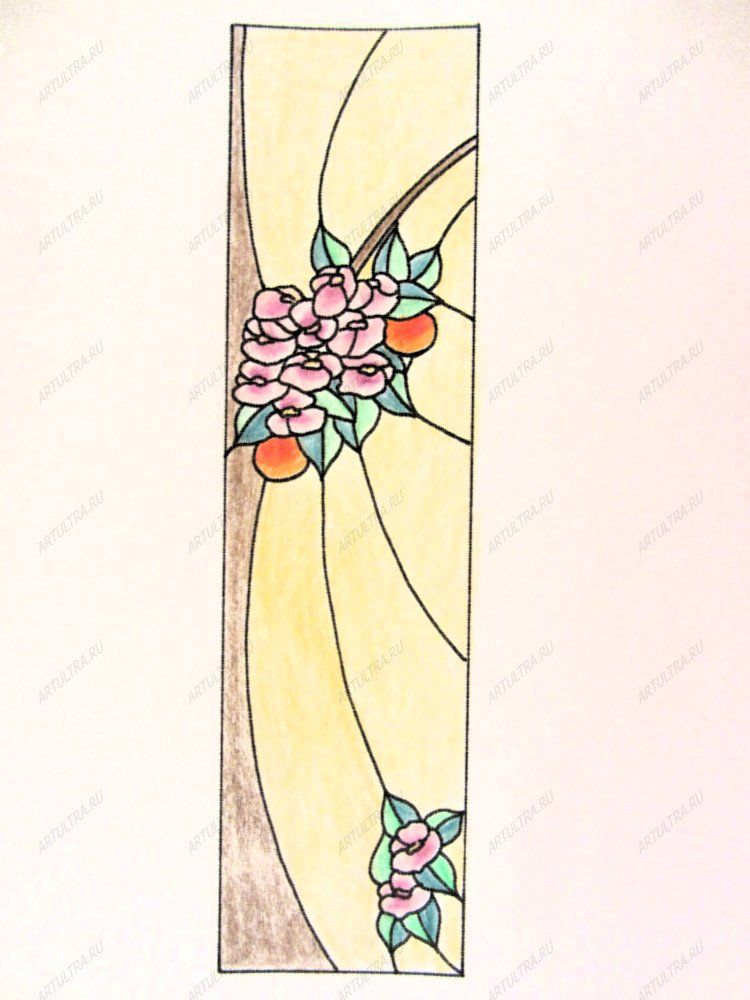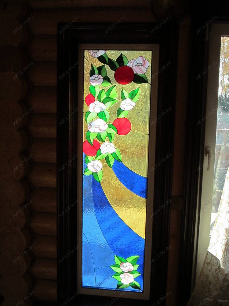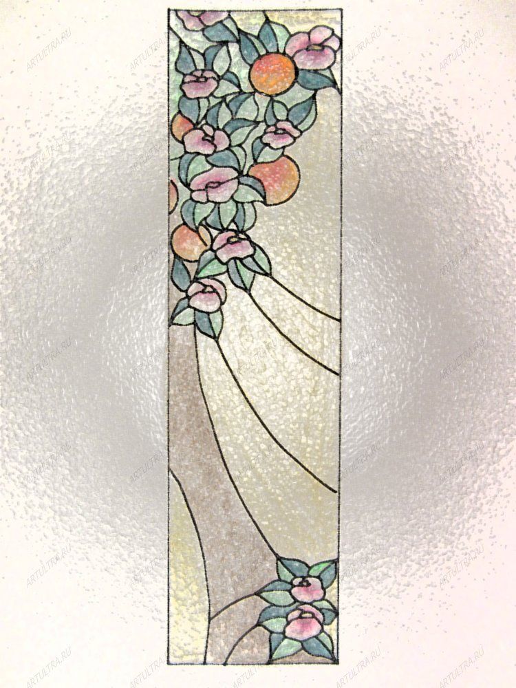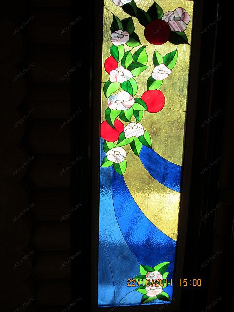 Установив этот красочный витраж в кухонном окне, вы больше можете не думать о том, какие шторы подобрать к вашему интерьеру, ведь окно и без того будет выглядеть нарядным, а интерьер кухни заиграет для вас новыми красками. Кроме того, традиционно яблоня символизирует семью, цветы – начало времени любви и страсти. Изготовление витража займет не менее двух недель, а гарантийный срок на изделие составляет целое десятилетие.