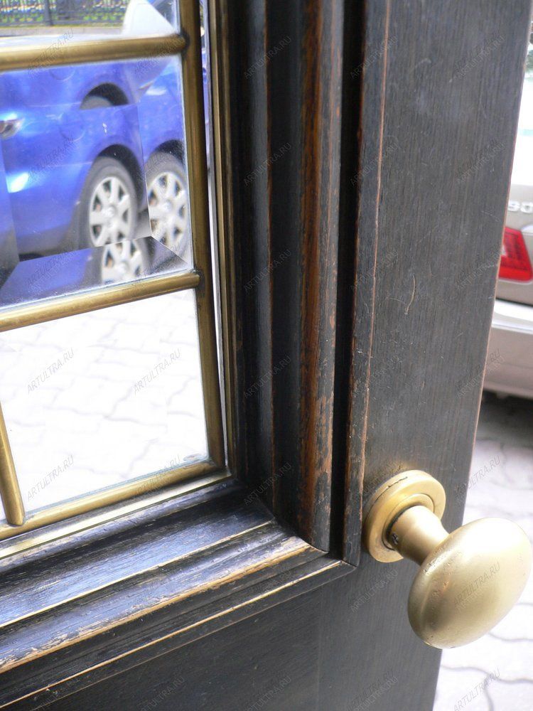 Данный витраж был изначально неверно установлен. Нижние секции были установлены несимметрично, что видно на фото 1. Поскольку витраж установлен в двери входной группы, через которую проходит постоянный поток людей, то со временем данный витраж был "выдавлен" наружу руками выходящих людей (фото 2). Специалистами нашей студии был осуществлен демонтаж поврежденной секции витража. Была осуществлена частичная замена элементов и их чистка. Затем витраж был смонтирован обратно, симметрично с уже установленной секцией.
