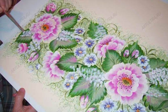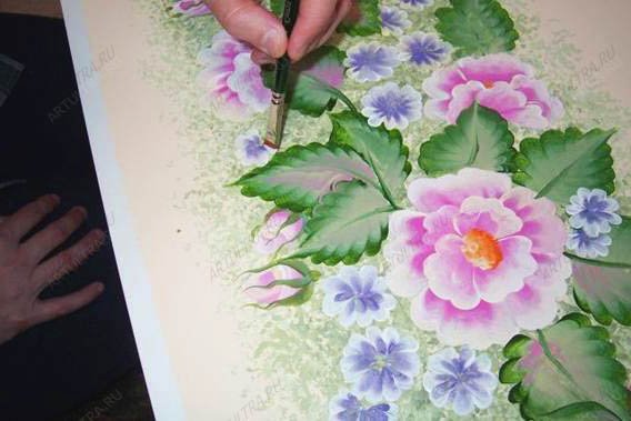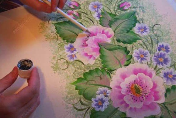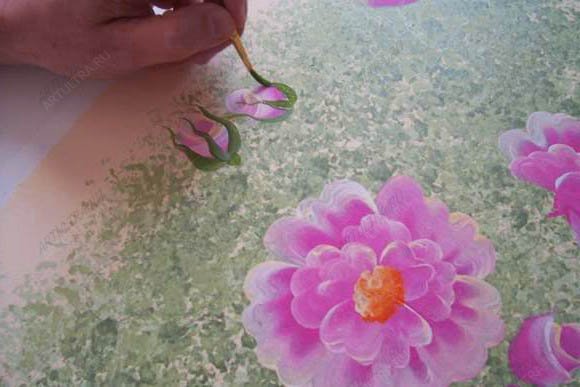 Однако перед этим необходимо подготовить стену, поскольку именно от подготовки поверхности зависит качество и долговечность настенного рисунка. Детально ознакомиться с процессом подготовки стен под роспись можно в разделе Подготовка стен под роспись.