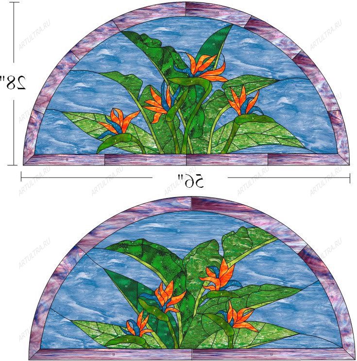 Цветы на витражах являются композицией, созданной в удивительной и необыкновенной технике Тиффани, которая в наибольшей степени позволяет почувствовать рукотворность изделия. Это обусловлено тем, что проведенные паяльником линии получаются разной толщины, а значит более выразительными и пластичными. Также в технике используются фактурные стекла, содержащие разные добавки. Помимо всего прочего, немаловажной особенностью техники Тиффани является то, что процесс создания витражей производится вручную, поэтому изготовление одного квадратного метра может занять не один месяц в зависимости от детализации рисунка. Зато в итоге получится не просто витраж, а поистине рукотворный шедевр.