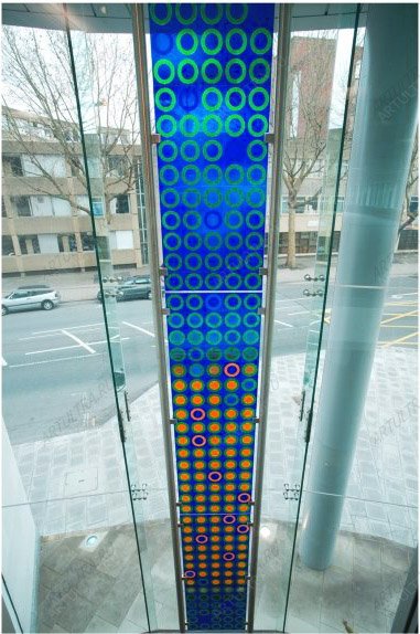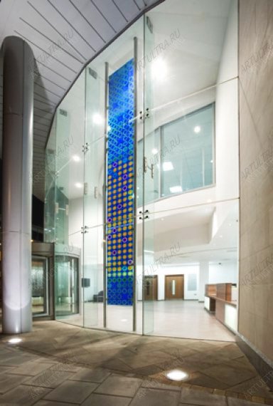Фотопечать для здания представляет собой современную технику декорирования, позволяющую наносить изображения высокого качества на любой вид гибкой или твердой поверхности. Специальные УФ-чернила, используемые в производстве, имеют высокий уровень цветопередачи. Под воздействием на них ультрафиолетовых лучей начинается необратимый процесс полимеризации, в результате которого чернила затвердевают на поверхности основы. При этом они не проникают в материал, а образуют тонкую поверхностную пленку. Такие изделия обладают устойчивостью к выцветанию, стиранию, а также к воздействию влаги и растворителей. В процессе производства витражей применяется специальный высококачественный УФ-принтер и чернила, способствующие созданию изделий с качественной цветопередачей, а также яркими насыщенными цветами и высокой оптической плотностью.