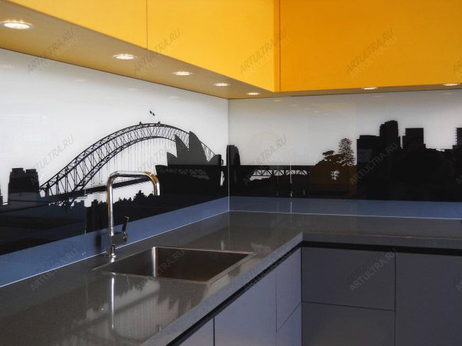 При обновлении кухни часто возникает вопрос относительно того, чем отделать часть стены между рабочей зоной и мебельным гарнитуром. Этот участок особенно подвержен загрязнению и требует регулярной чистки. Его можно обложить кафелем или пластиковыми панелями, покрасить или обклеить моющимися обоями, но такие варианты смотрятся скучно и неоригинально. Кухонный фартук, украшенный фотопечатью, привнесет в интерьер элегантность и лаконизм. Такой декор отличается приемлемой стоимость и легкостью монтажа. Ухаживать за кухонным фотовитражом очень просто: необходимо время от времени протирать его слегка влажной тряпкой без использования абразивных моющих средств.