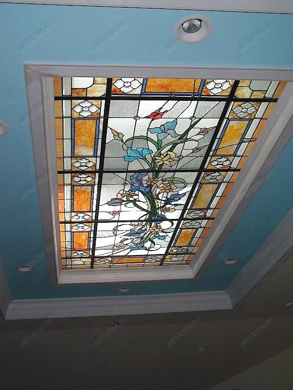 Горизонтальный витраж предназначен для декоративной отделки потолка. Это оригинальный и современный элемент интерьера, который послужит достойным и элегантным украшением вашего жилища. Также он привнесет в него выразительность и создаст комфортную благоприятную обстановку.