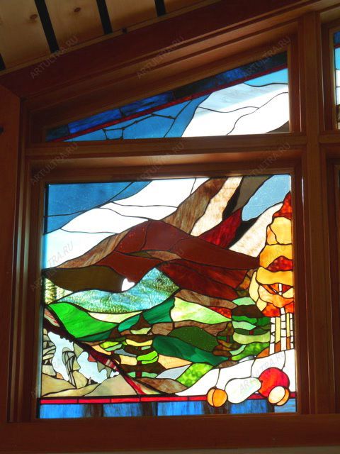 Окно с витражом на тему осень