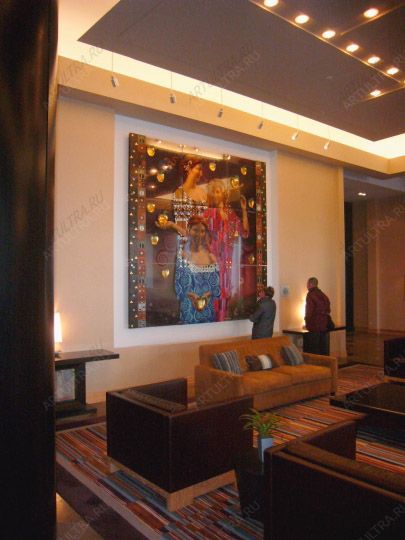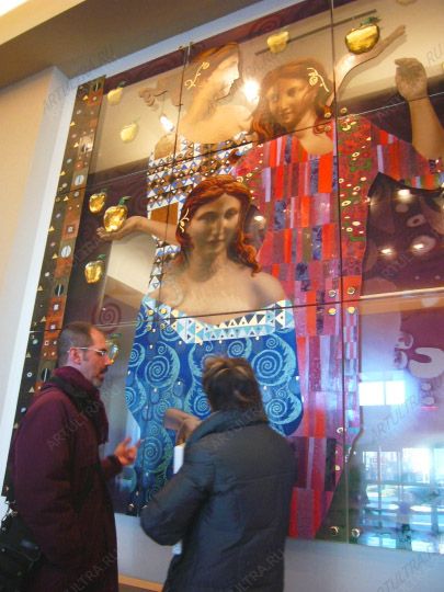 Такая картина стекла на стене идеально вписывается в интерьер гостиничного комплекса, музея или выставки. Композиция позволяет насладиться работой мастера, рассеянное освещение совсем не напрягает глаза, придавая интерьеру уютность и лаконичность. Богатство красок, изящество линий и использование фигурных стекол (кабошонов) – все это привлекает и завораживает, поскольку такая картина действительно достойна восхищения, поскольку каждый ее элемент проработан вручную.