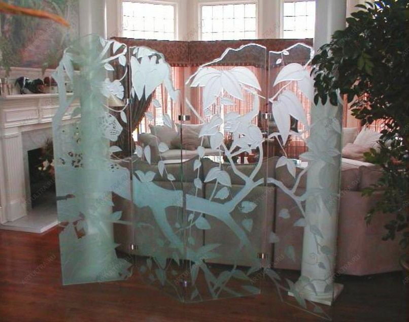 Картинки пескоструем, нанесенные на стеклянную ширму, создадут в любом помещении волшебную атмосферу, добавят необыкновенного шарма и изысканности. Сама витражная ширма представляет собой передвижную конструкцию, которая обладает функциональностью и особой привлекательностью.