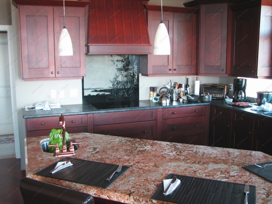Для кухни с фоторисунком специально подобраны нейтральные цвета, они не раздражают и не режут глаз. Спокойные оттенки позволяют успокоиться и убрать все негативные эмоции. Когда смотришь на фоторисунок, то создается эффект полного присутствия.