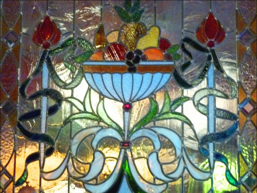 Натюрморт в витражной технике – достаточно оригинальное решение для дизайна кухни или гостиной. Как пелось в известной песне - «Если видишь на картине или грушу, или торт, или все предметы сразу, знай, что это – натюрморт!» Картина в стиле модерн изображает вазу с аппетитными фруктами в обрамлении причудливого орнамента. Если вам необходимо украсить столовую, кухню или гостиную, то это решение станет отличным вариантом для вас.