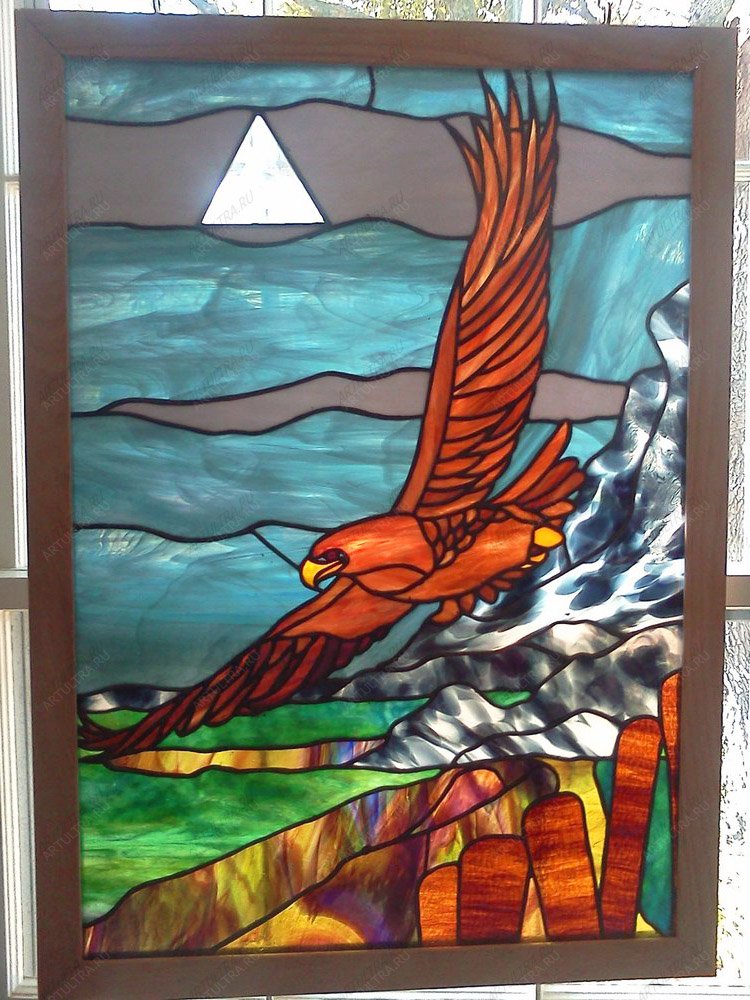 Украшая свой дом витражными окнами, вы внесете в него тепло и уютную обстановку. Там где есть такие украшения, атмосфера поистине волшебная и, кажется, что в доме поселилась сказка. Вольнолюбивый орел станет показателем того, что здесь живет сильный духом человек, привыкший добиваться своего.