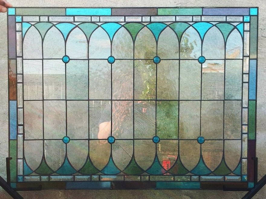 Оконный пленочный витраж выполнен с применением самоклеящейся пленки DECRA LED. Такие витражи визуально выглядят как классические или выполненные в технике Тиффани. Детали из стекла заменены элементами разноцветной виниловой пленки для витражей, а медная фольга и припой Тиффани имитируется металлической клейкой лентой. Разнообразием яркости цветов, количеством узоров, возможности выполнить любой рисунок, витражи из пленки не уступают наборным, но стоимость их гораздо ниже. Благодаря этому, а также быстрому сроку исполнения, пленочные витражи завоевали большую популярность дизайнеров интерьеров.