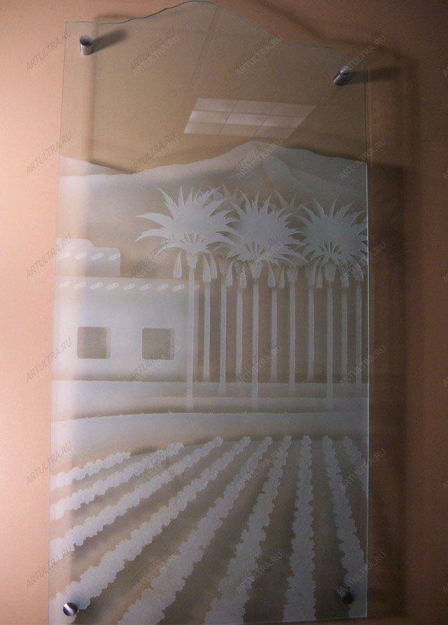 Пескоструйные картины предназначены для стильного уникального декорирования интерьера вашего жилища. Подобный декор создаст изумительную волшебную красоту в вашем доме и подойдет для любого помещения любой стилевой направленности. Устойчивость к воздействию к влаги и перепадам температур позволяет использовать такой витраж в ванной комнате, в бассейне, на кухне. Данная техника придаст интерьеру благородный и элегантный вид, обеспечив тем самым роскошную и богатую обстановку.