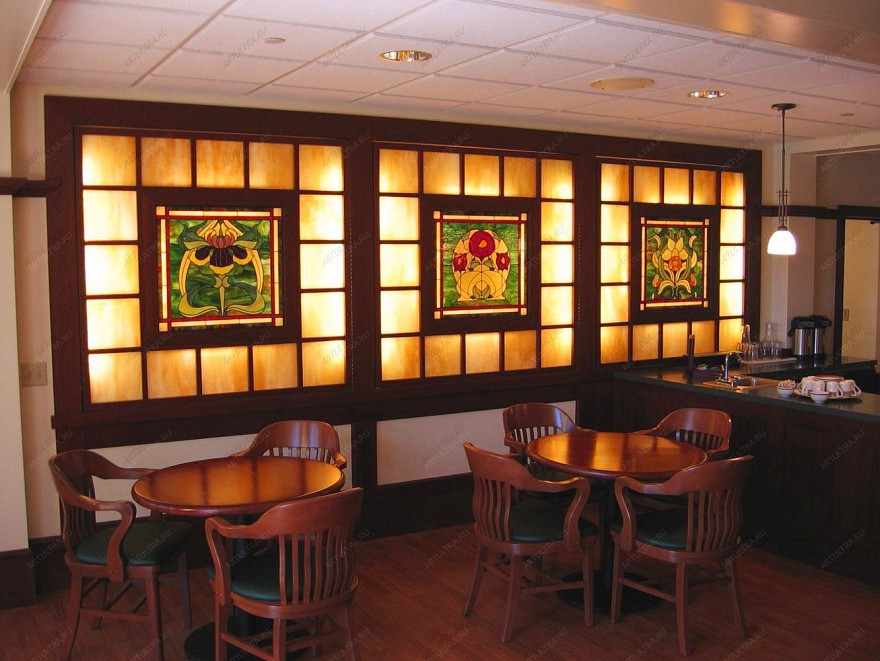 Роскошные витражи – популярный и современный элемент декора интерьера. Недаром еще наши предки несколько веков назад овладели искусством создания витражей из цветного стекла. Только в то время на это творчество уходило гораздо больше времени и сил, а украшали ими в то время только церкви и храмы. И никто даже не мог представить, что настанет время, когда применение витражного искусства станет возможным для украшения собственного дома и прочих общественных помещений, в т.ч. ресторанов.