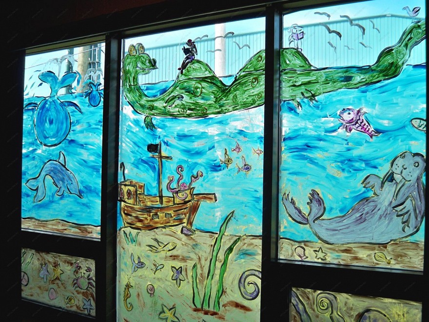 Детская роспись в стеклянных дверях