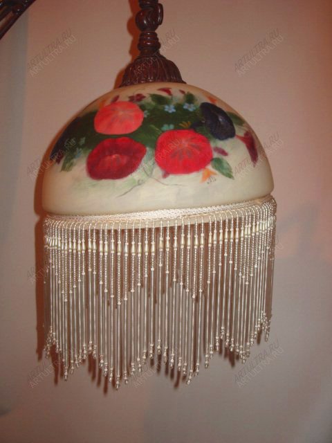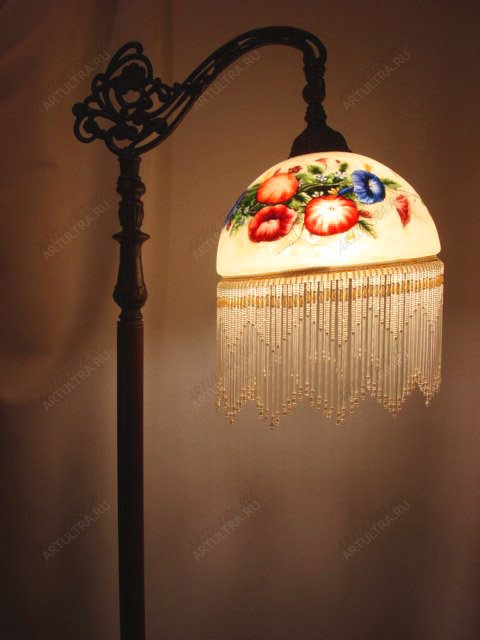 Роспись торшера позволит сделать из банального светильника произведение искусства. Все знают, что уютное вечернее освещение комнаты напрямую зависит от особенностей абажура. Именно он дает нужную мягкость и теплую атмосферу. Стеклянный колпак для светильника лучше пропускает свет и выглядит намного красивее других. Витражный абажур подарит вам сказочный уют и безмятежную обстановку. Торшер, выполненный посредством расписного витража, выглядит чрезвычайно красиво и завораживающе. Кроме того, такой рисунок будет эксклюзивным, т.к. выполняется вручную опытным художником.