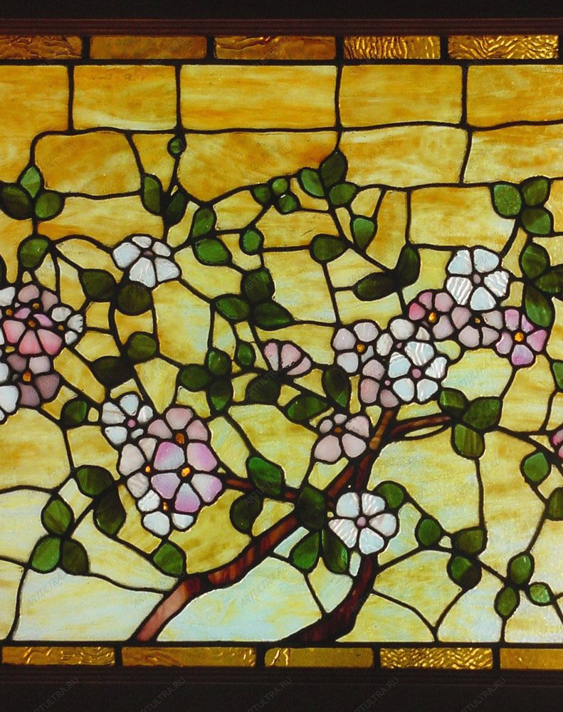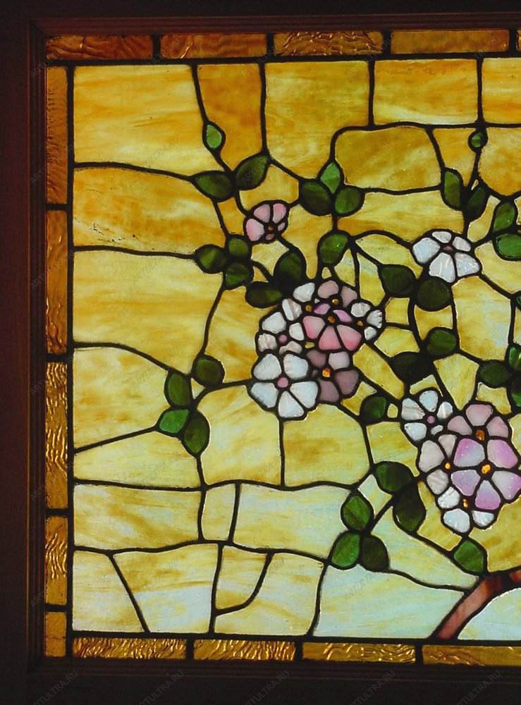 Сакура в витраже представляет нам цветок, являющийся на протяжении многих веков у жителей страны восходящего солнца самым любимым символом японского характера. Сакура, кроме всего прочего, олицетворяет собой праздник весны, пробуждение природы, начало новой жизни. Этот цветок символизирует также женскую красоту и молодость.