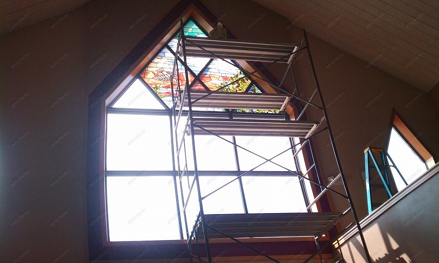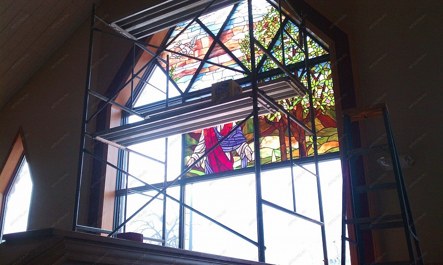 Среди ряда особенностей витражной техники Тиффани наиболее значимой является нереальность использования в процессе работы даже частичной автоматизации. Таким образом, изделия производятся вручную точно также, как рисуются картины масляными красками. Поэтому для их создание порой требуется немало времени. Например, изготовление данного сложного витража требует от мастеров срока исполнения в течение одного месяца, так как работа имеет высокую степень сложности.