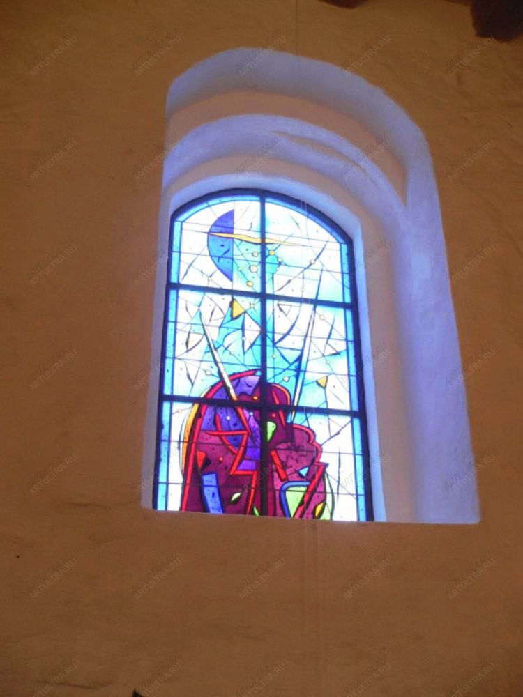 В витраже наблюдается явное преобладание синих тонов. Интересно, что психологи придерживаются мнения, что оттенки синего оказывают успокаивающее действие на человека, помогают расслабиться, создавая в доме безопасную доверительную атмосферу. Помимо этого, синий цвет создает удивительное ощущение комфорта, являясь цветом неба, воздуха и воды. Также он располагает к глубокомысленным раздумьям, к самоуглублению.