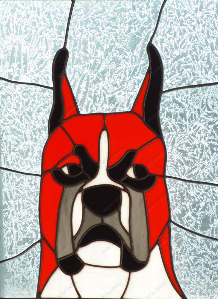 На витраже «Бульдог» изображена собака английской породы. Более того, англичане считают бульдога символом нации, сочетающим в себе как целеустремленность и силу, так и аккуратность и добродушие. Несмотря на достаточно грозный вид и свое происхождение, для многих людей она способна стать настоящим и преданным другом. Такой витраж создаст чувство защищенности и спокойствия.