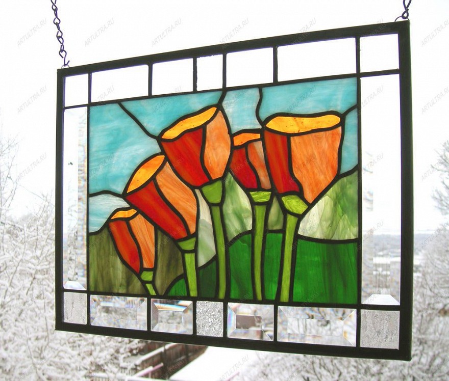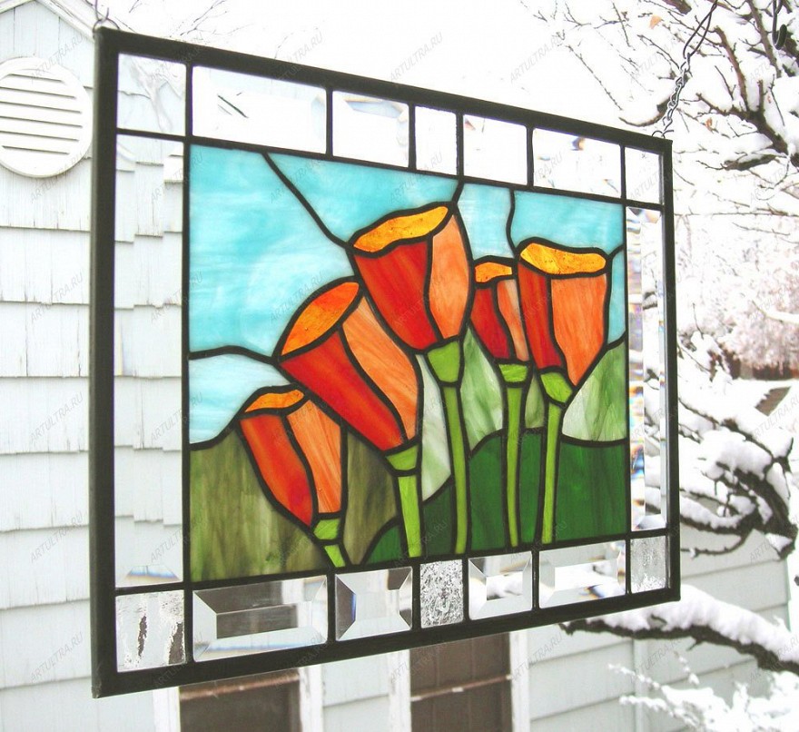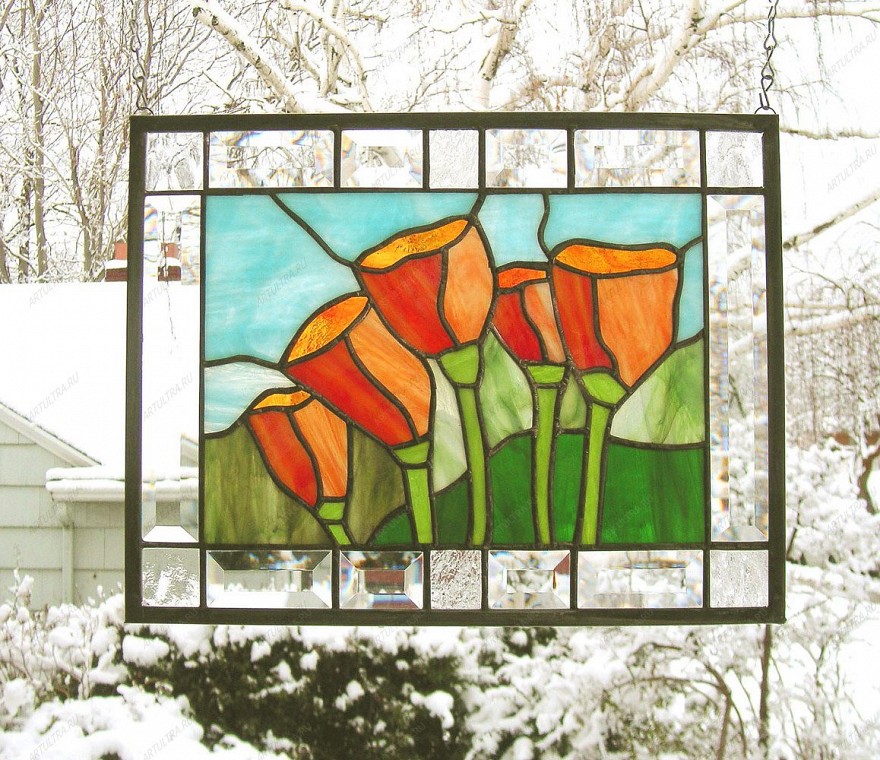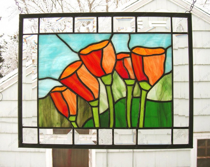 Витраж с цветами мака очень прост в уходе: моется обычным составом для стекла при помощи мягкой ткани, никаких спецсредств не нужно. Комнатные двери, украшенные витражами, часто незаметно обновляют интерьер до неузнаваемости, именно поэтому дизайнеры все чаще применяют его для разработки дизайна комнаты. Есть мнение, что картины из стекла выбирают те люди, у которых тонкая романтичная натура и отменное чувство стиля. Если вы относите себя к таковым, то витраж с цветами мака создан именно для вашего дома.