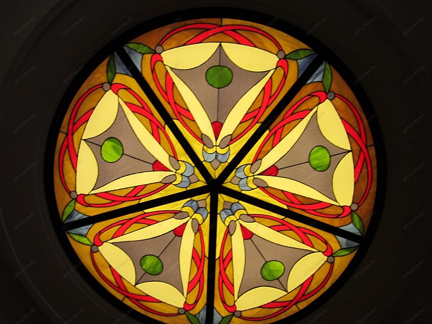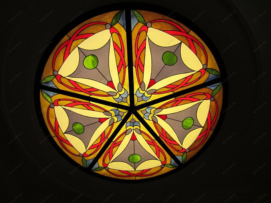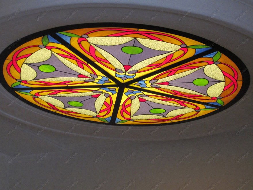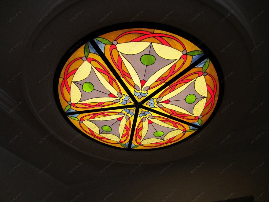 Витраж «Фэн-шуй» является оригинальным способом декоративного оформления потолка. Свое применение он может найти в таких помещениях, как гостиная или кабинет, сделав их интерьер более выразительным и эффектным.