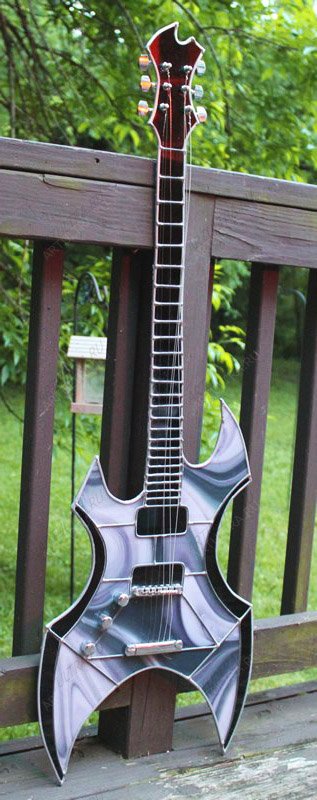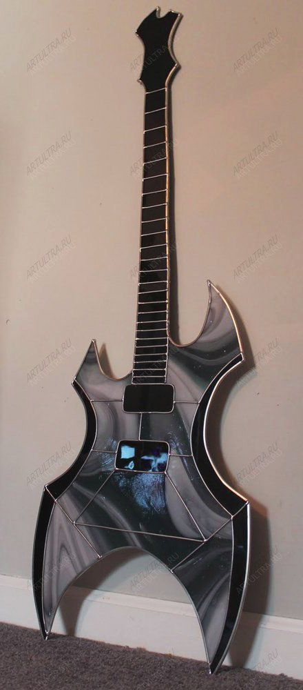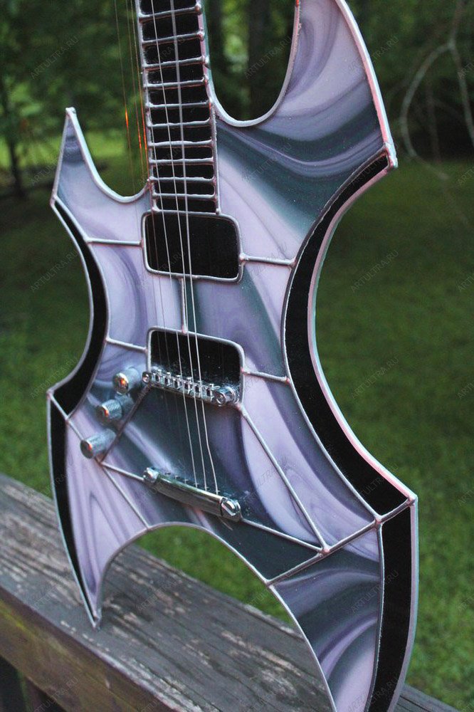 Витраж «Гитара» – очень необычное и своеобразное эксклюзивное декоративное витражное изделие. В наибольшей степени ориентировано на любителей музыки, фанатов как инструментального, так и бардовского жанра или же для любителей рок-направления.