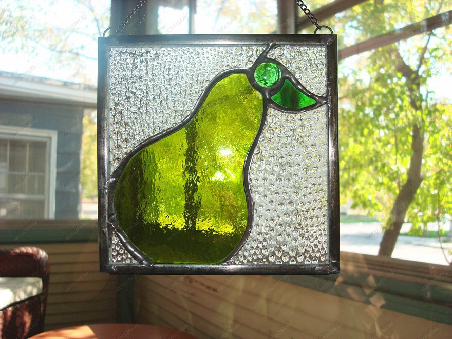 Витражная груша послужит прекрасным декором к любому интерьеру вашего дома. Такие витражные картины очень неприхотливые и не обязывающие, поэтому могут дополнить любой уголок вашей квартиры, внеся в него радостную и позитивную нотку.