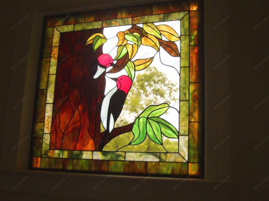 Уход за витражом «Колибри» не требует особых реверансов: по мере загрязнения протираем изделие тканью смоченной в обычном средстве для мытья стекол. Главное - не злоупотреблять растворителями, тогда это волшебное окно прослужит дольше заявленного гарантийного срока в 12 лет.