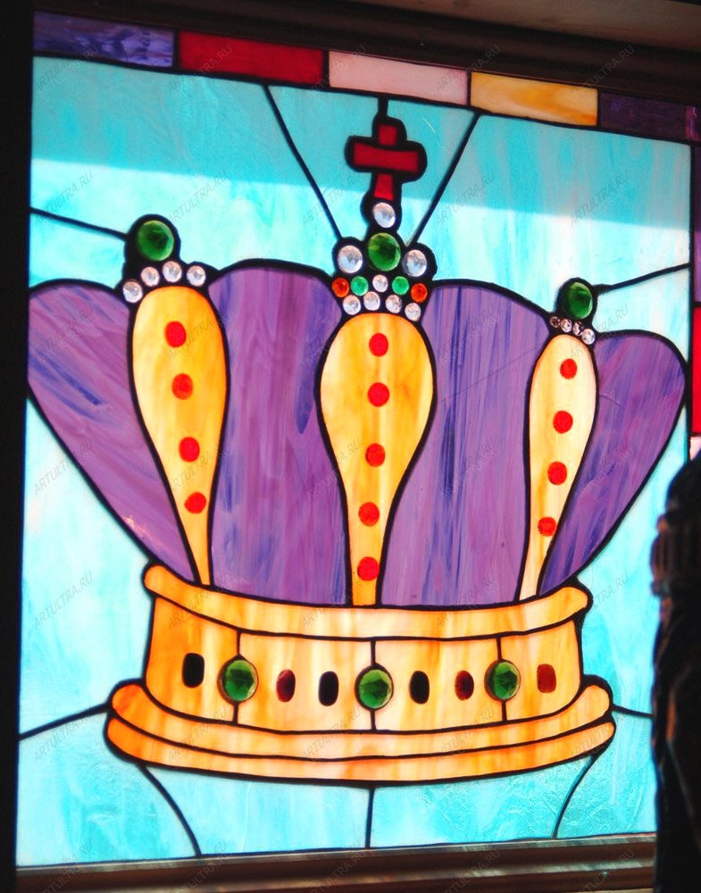 Витраж короны обладает еще одним существенным плюсом: он очень прост в уходе и не требует специальных средств: его нужно мыть, так же как и простое стекло, единственное условие – не пользоваться кислотосодержащими и абразивными составами. Гарантийный срок составляет 12 лет, но если соблюдать вышеуказанные несложные правила, то, скорее всего витраж прослужит вашему дому не один десяток лет. Дом, украшенный витражами, выглядит стильно и изысканно. Атмосфера королевских замков станет спутником вашей жизни и прибавит ощущение роскоши.