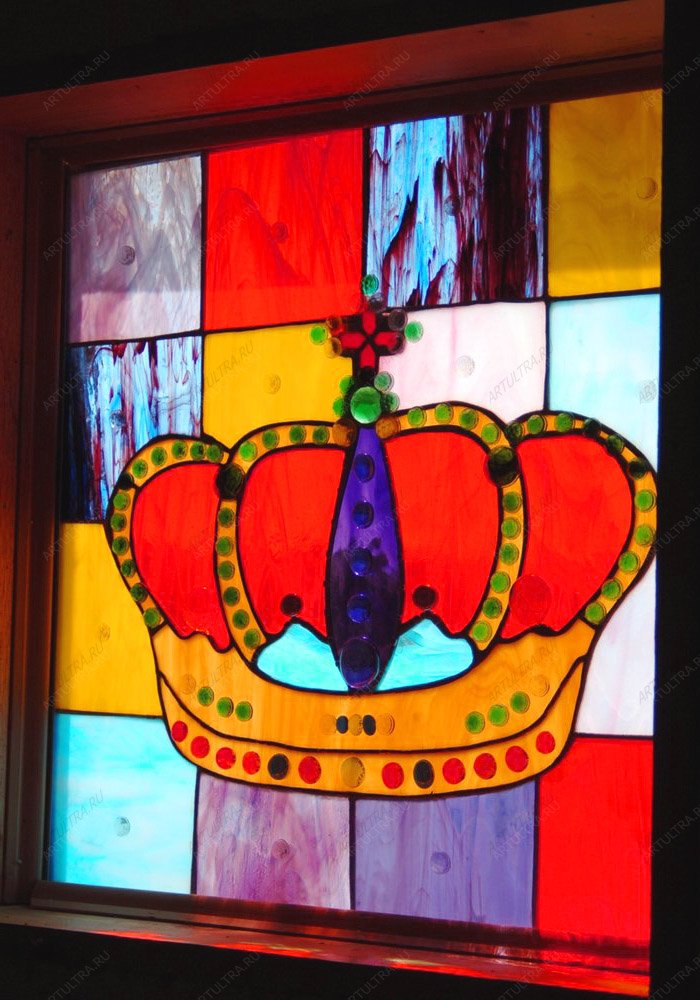 Витраж короны украсит окно в любом помещении. Чаще всего их монтируют в гостиных и прихожих. Впрочем, никто не запрещает установить его на кухне или даже в спальне, так как картина выполнена в стиле готика в яркой цветовой гамме, которая будет сочетаться с любым дизайнерским решением, и впишется в любую обстановку. Качественные материалы известной марки Spectrum и современное оборудование позволяют дать гарантию того, что изделие не токсично, а значит безопасно для здоровья. Кроме этого, оно обладает высокими характеристиками прочности.