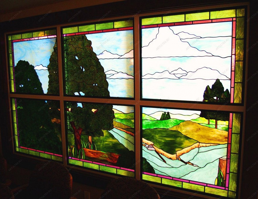 Витраж «Лето» будет чудесно гармонировать с любым стилем интерьера, прекрасно его дополняя и придавая ощущение законченности в дизайне. Работа по изготовлению витража относится к высокой степени сложности, а потому займет не менее двух месяцев. Уход за ним достаточно простой – периодически удаляйте пыль с поверхности панно при помощи влажной ткани без ворса с использованием мягких моющих средств.