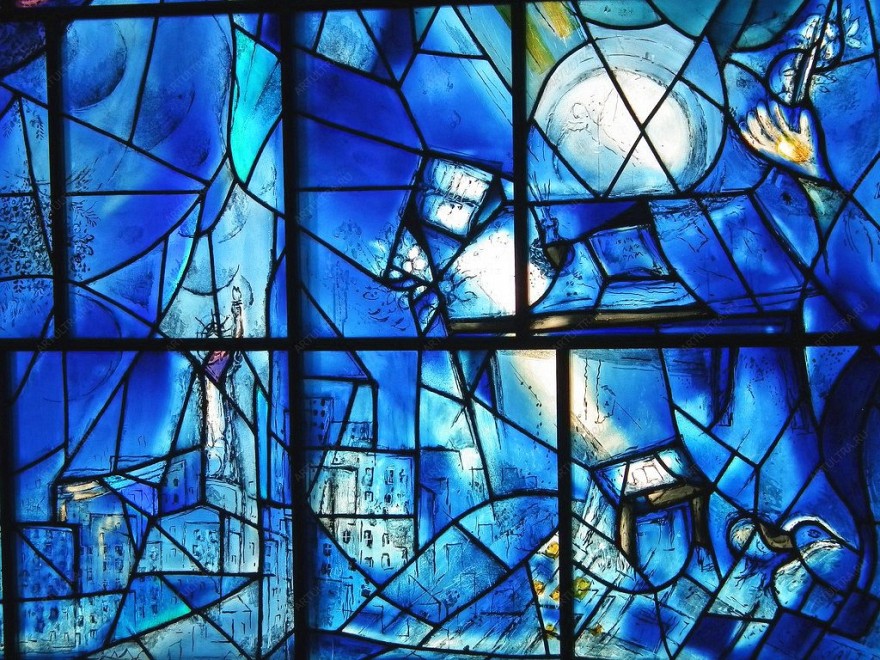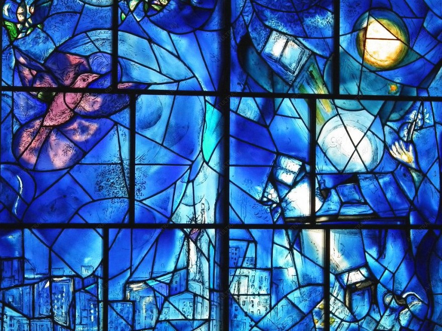 Витраж «Ночной город» выполнен в приглушенных синих тонах и в необычной манере исполнения. Особое видение художника наделило витраж оригинальной, скрытой от посторонних глаз жизнью. Ночные тени и странные существа наполнили картину невероятной привлекательностью и мистикой. Волшебные переливы цвета и фантастическую реалистичность добавила витражу популярная техника Тиффани. Большое количество деталей были обработаны стеклорезом для придания им своеобразной формы. Затем причудливая мозаика соединилась в монолитную композицию при помощи надежного оловянного припоя, а лента из меди придала ей прочности. Нереальный рисунок, похожий на сновидение, преобразит ваш дом.