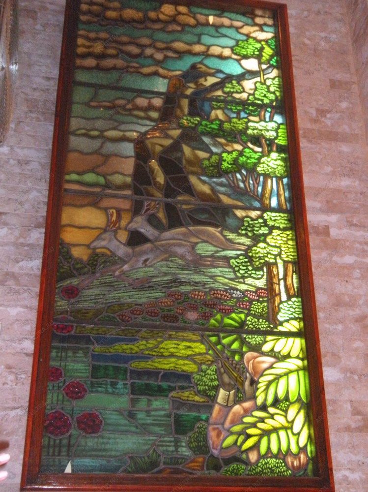 Витраж “Охота” - это одно из сложнейших изделий в коллекции нашей компании, он выполнен в технике Тиффани. В этой технике возможно создать витраж практически с любым сюжетом. Вы можете воссоздать сами или заказать в нашей компании сюжет любимой картины. Изготовить именно этот витраж своими руками будет довольно сложно для новичка, такая задача под силу только опытному мастеру, давно работающему в технике Тиффани. Именно такие профессионалы работают в нашей компании, поэтому стало возможным создать эту композицию из ста восьмидесяти девяти элементов. Каждому из них сначала придали нужную форму, затем обтянули медной лентой и только после этого приступили к созданию самого витража. С точки зрения монтажа, эта конструкция довольно громоздкая, поэтому для прочности крепления она была разбита на четыре части. Даже профессионалу для того, чтобы сделать витраж “Охота”, требуется довольно много времени, мастерство, терпение и опыт.