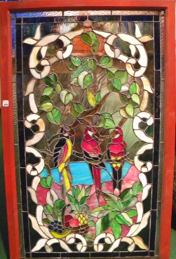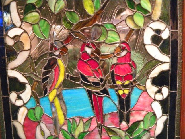 Витраж «Попугайчики» – эффектная и очень красочная витражная картина, которая станет великолепным украшением интерьера любой комнаты. Как элемент декора она несет очень светлый и позитивный настрой, прекрасным образом поднимая настроение и бесконечно радуя хозяев жилища.