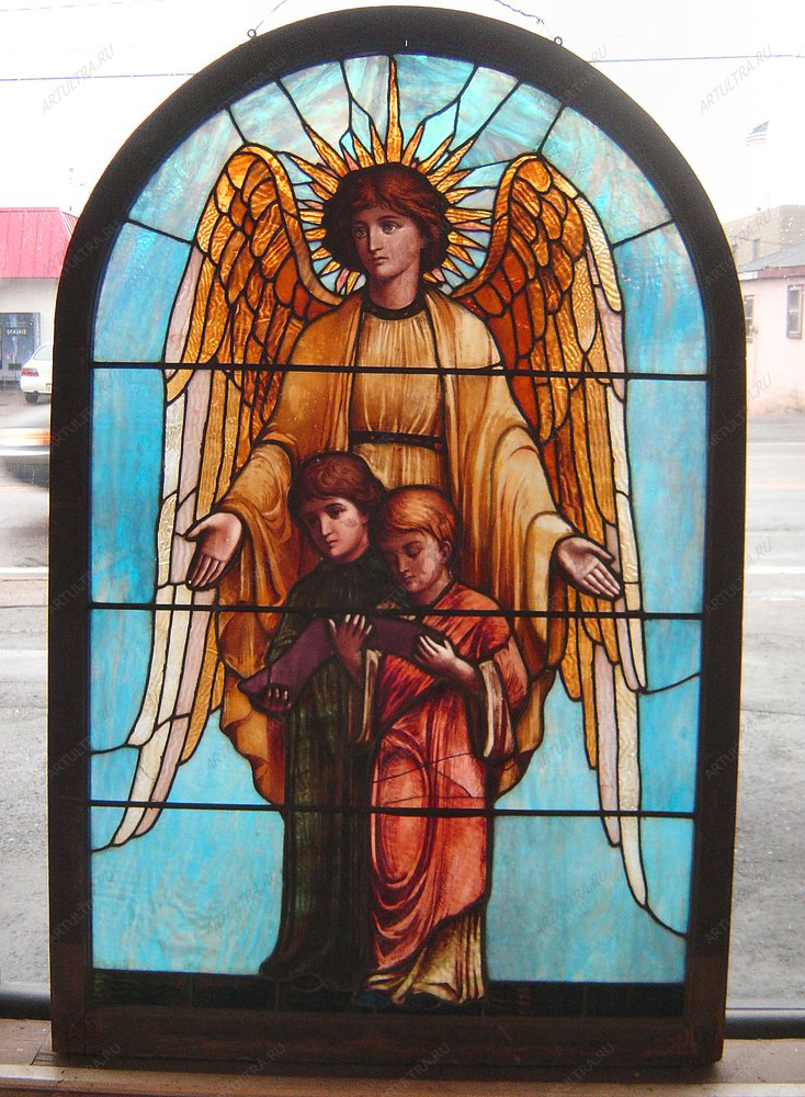 В библейской традиции ангелы были духовными существами, посредством которых Всевышний являет свою волю. Потому ангелам, помимо того, что они являются символом служения, приписывались чистота, заступничество и высшая духовность. Кроме этого, с ангелами связывали силу, красоту, энергию и бескорыстие. Такая витражная композиция станет уместна в детской комнате, ибо ангелок будет охранять вашего ребенка, создавая в его комнате покой и умиротворение.