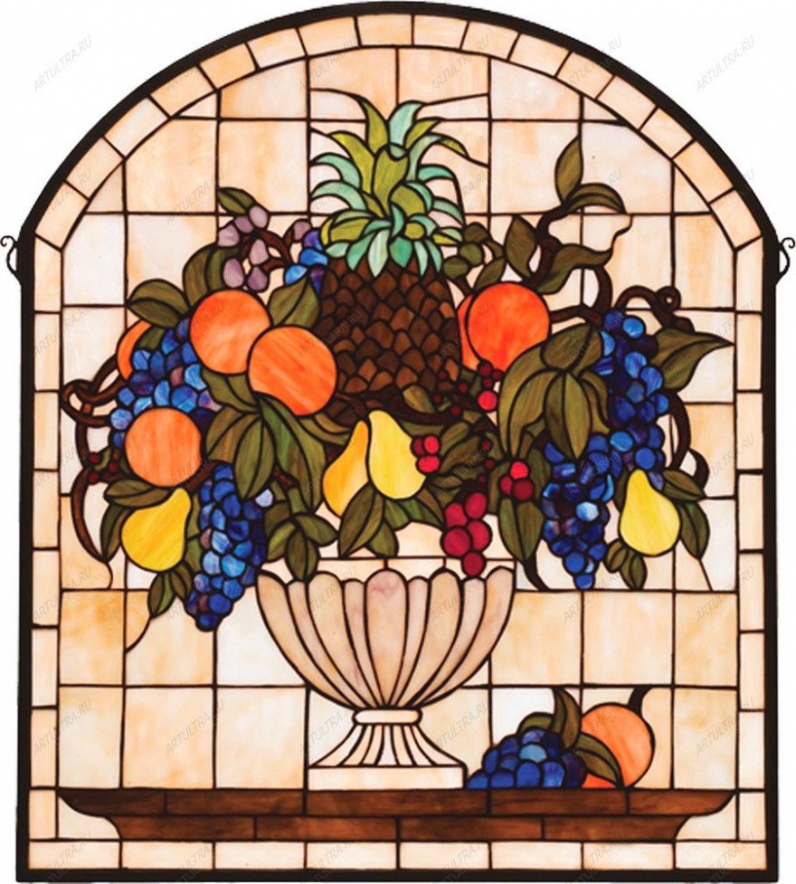 Витраж с фруктами предлагает вам проникнуть в сказочный, удивительный мир, который создал мастер из множества тщательно подобранных элементов, где каждый кусочек стекла - на своем месте. Каждый фрагмент в нем обладает своими неповторимыми свойствами, которые достойны быть воплощенными в произведении искусства из стекла. Картина наделена достоверностью и жизнью. В 17-м веке каждый натюрморт имел очень глубокий смысл. Натюрморты с фруктами часто символизировали собой скоротечность времени либо застывший момент. А что будет крыться за вашей картиной – решать вам.