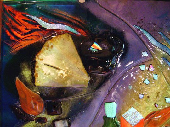 Витраж с фьюзингом кардинально изменит помещение в лучшую сторону и придаст ему некоторой претенциозности и утонченного стиля. Техника фьюзинг уникальна тем, что оплавленные стекла как бы впаяны друг в друга, за счет чего создается удивительный эффект монолитной композиции из гладкого тяжелого стекла. Такие витражи популярны, когда дело касается украшения кухни, особенно если речь идет о нише над плитой. Дело в том, что такой витраж выдерживает высокие температуры, не теряет цвета и устойчив к влаге. Кроме этого, он спокойно моется от жировых отложений, так как закаленное стекло очень сложно разбить или поцарапать.