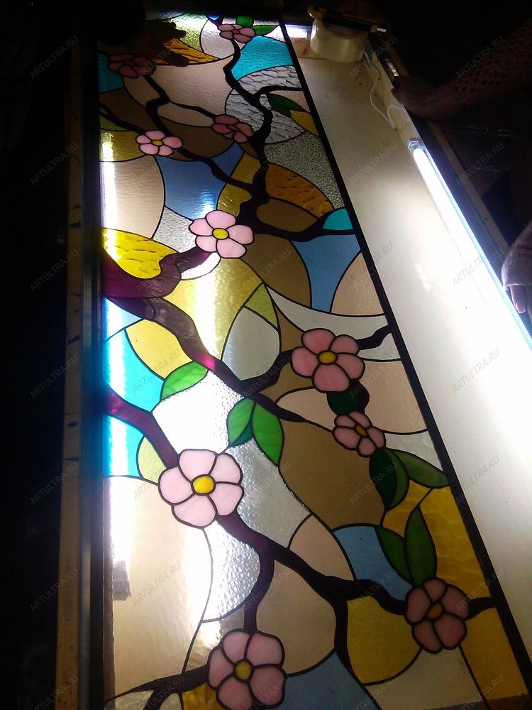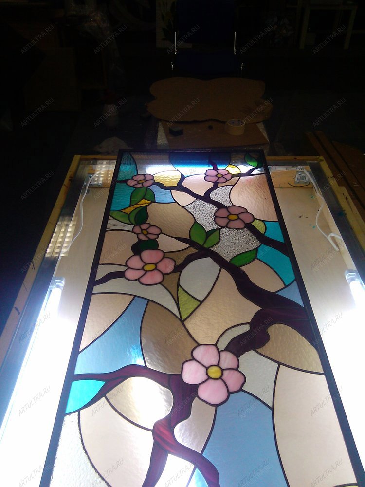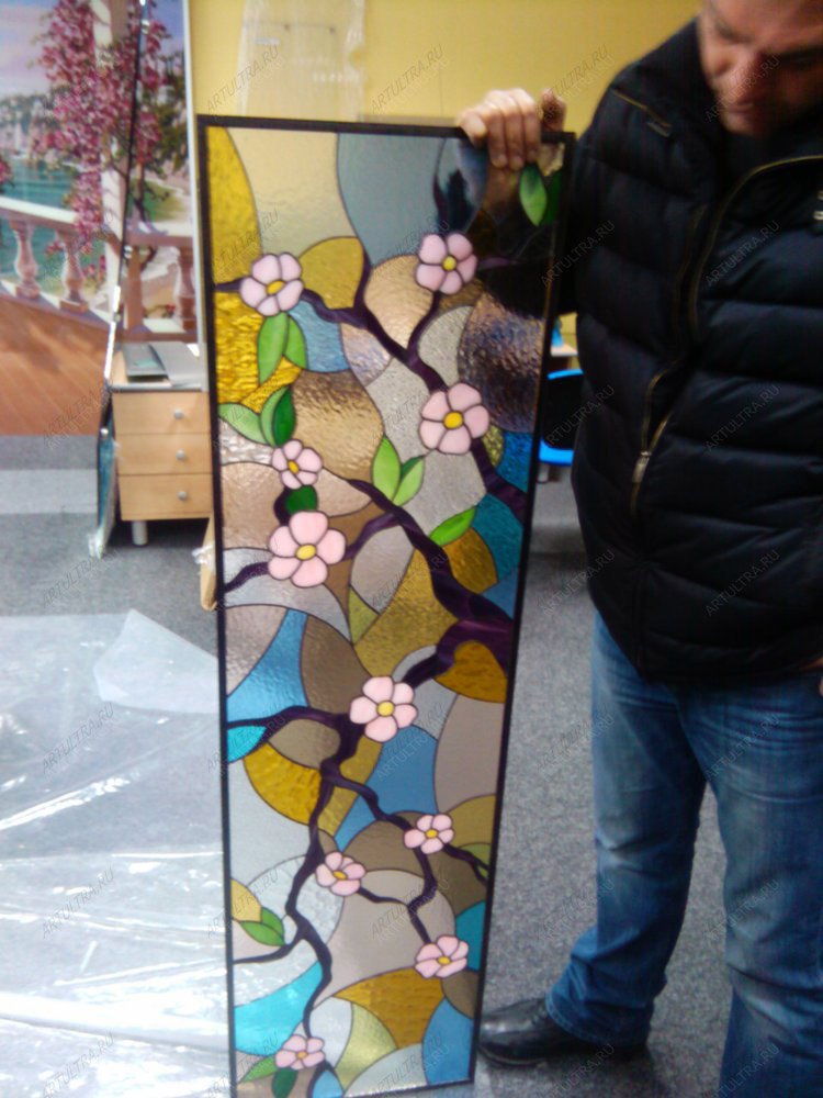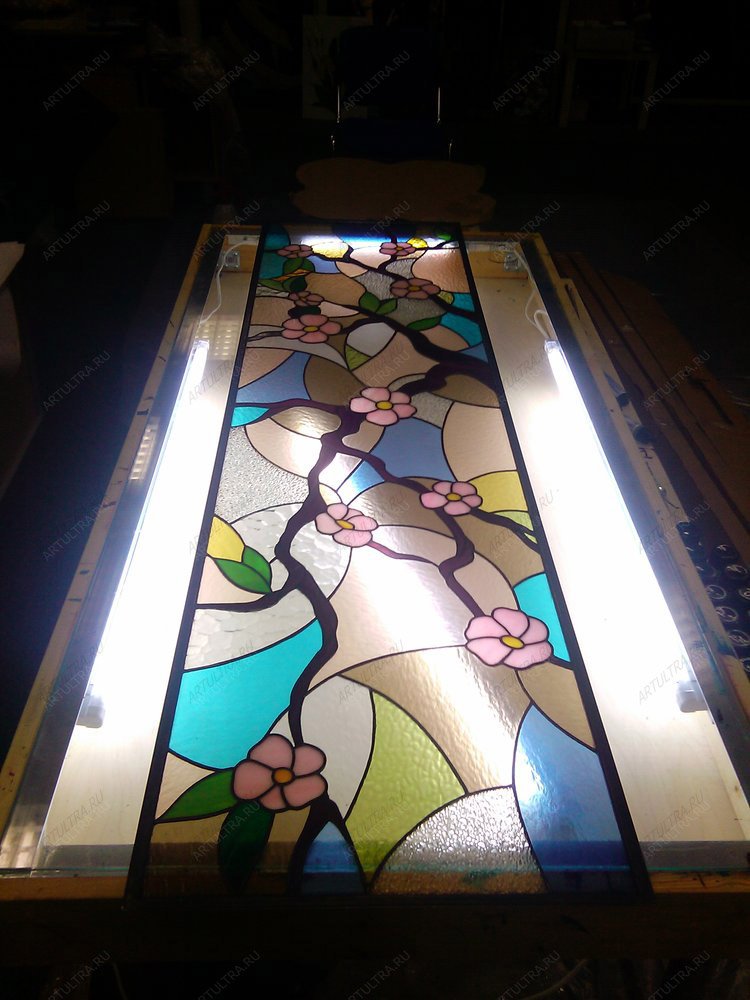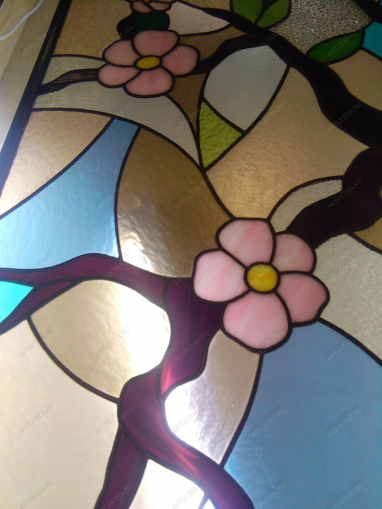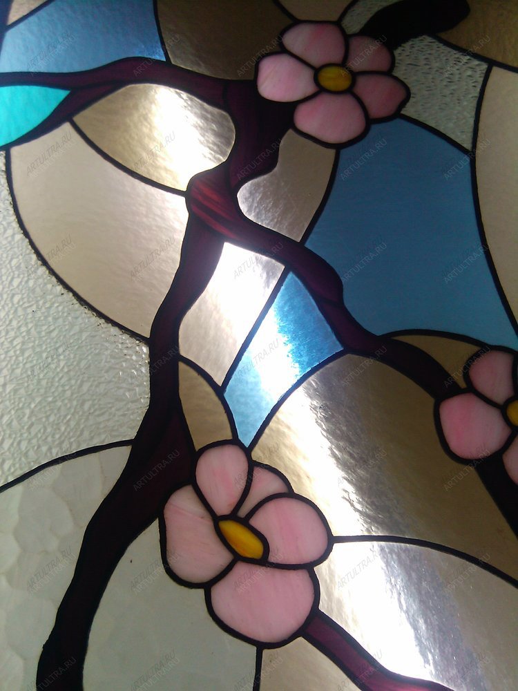 Данное изделие считается работой со средней степенью сложности, поэтому срок изготовления витража «Сакура» составляет не менее трех недель. Гарантийный срок – 12 лет.
