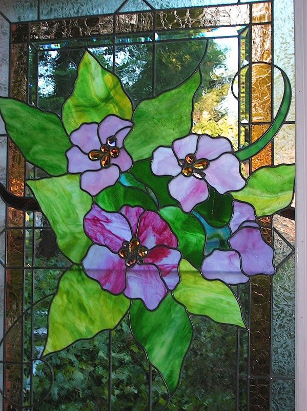 Витраж Тиффани в окнах, с чудесным изображением зелени и цветов, станет достойным украшением абсолютно любого помещения, в каком бы стиле оно не было выполнено. Во-первых, техника Тиффани, в которой выполнен витраж, славится своим безупречным качеством и высокой детализацией изображений, во-вторых, такой рисунок сам по себе прекрасен, ибо не существует такого интерьера, к которому бы не подошли чудесные цветы.