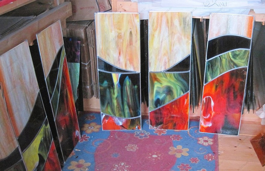 - цветное стекло, оловянно-свинцовый припой, медная лента