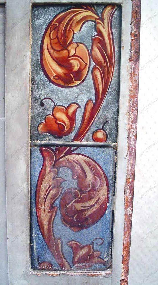 Расписной витраж, посредством которого создан витраж «Викторианский стиль», является одной из самых распространенных техник псевдовитражей. Она представляет собой ручную роспись стекла специальными красками. Начинается процесс изготовления как всегда с разработки эскиза будущего сюжета. После чего он рисуется в натуральную величину, при этом прорабатывается и разбивается на отдельные цветовые фрагменты. Далее на подготовленный эскиз накладывается стекло и прорисовываются контуры изображения при помощи специальных контурных красок. После высыхания контура заливаются витражные краски или их наносят при помощи кисти.
