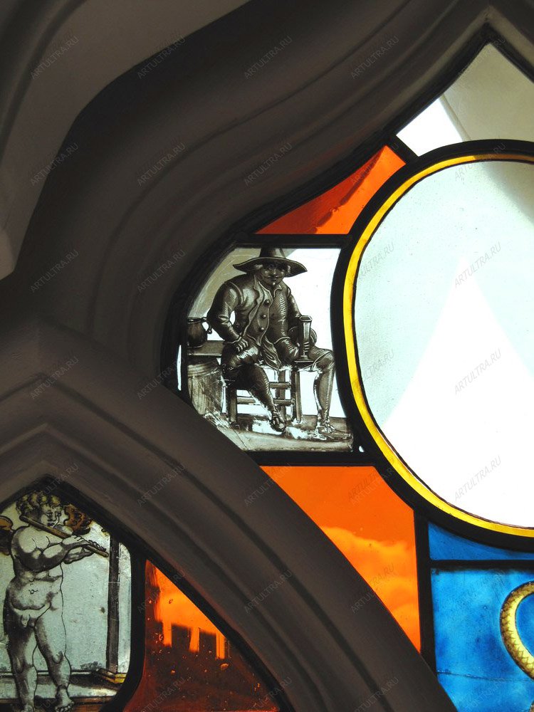 Комбинированные витражи такого типа создаются следующим образом: 98 стеклянных деталей обрабатываются стеклорезом, после чего собираются воедино с помощью металлического припоя. Далее классический витраж украшается авторской художественной росписью, что придает ему изысканность и оригинальный вид. Своеобразные рисунки органично впишутся в интерьер коттеджа, выполненный в классическом, античном или ар-деко стилях, подчеркнув тем самым его единство. Подобные витражи, безусловно, станут изюминкой дизайнерской мысли и подчеркнут уточненный вкус их владельца.