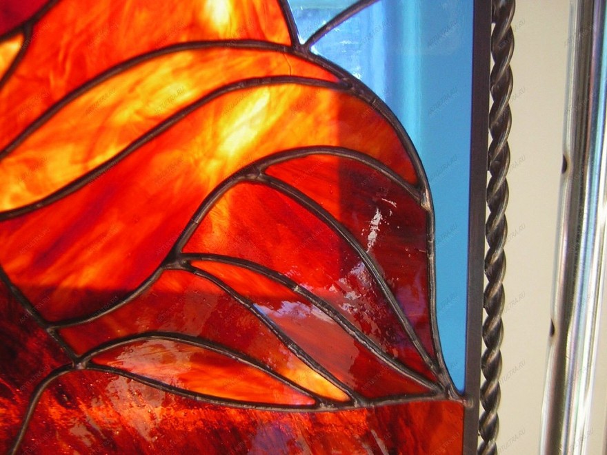 Данная витражная лошадь выполнена в технике классического наборного витража, которым пользовались еще средневековые мастера для украшения домов знати. Уникальность этого метода заключается в том, что все цветные стекла сначала шлифуются, а потом соединяются между собой металлическим профилем и выкладываются согласно шаблону рисунка. Сегодня умельцы усовершенствовали эту технику и теперь изделия получаются гораздо легче, но очарование средних веков остается в каждой подобной работе. В этом можно убедиться, глядя на это прекрасное гнедое животное на фоне синего неба и бушующего моря. Благодаря профессионализму и старанию мастеров, витражная лошадь выглядит словно живая. Качественные стекла позволят создавать витражные картины с необычной фактурой, а металлический припой придает ей надежность и прочность.
